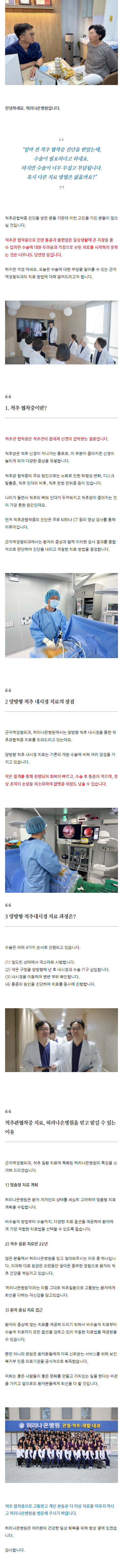 협착증은 초기에는 비수술 치료로 충분히 관리가 가능하며, 대부분의 환자들이 수술 없이 호전됩니다.